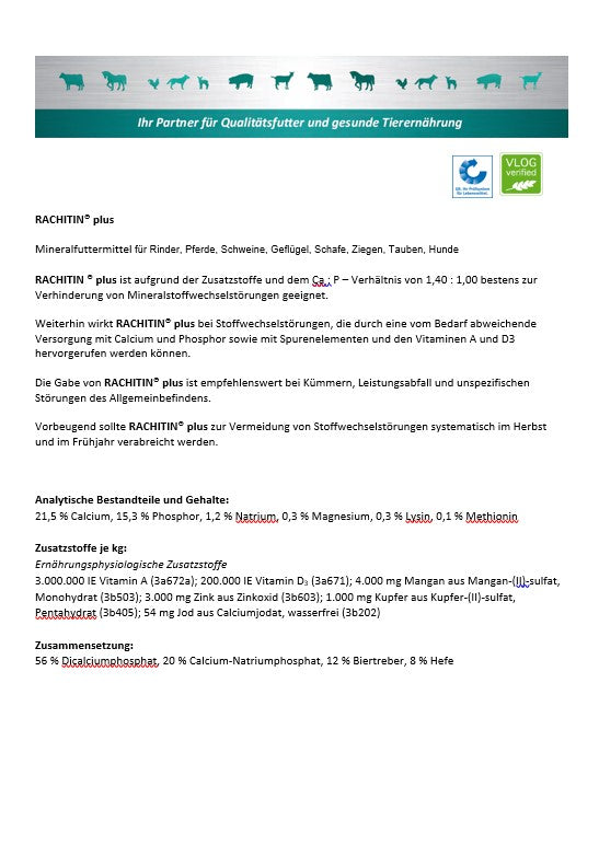 RACHITIN® plus Mineralfuttermittel für alle Tierarten